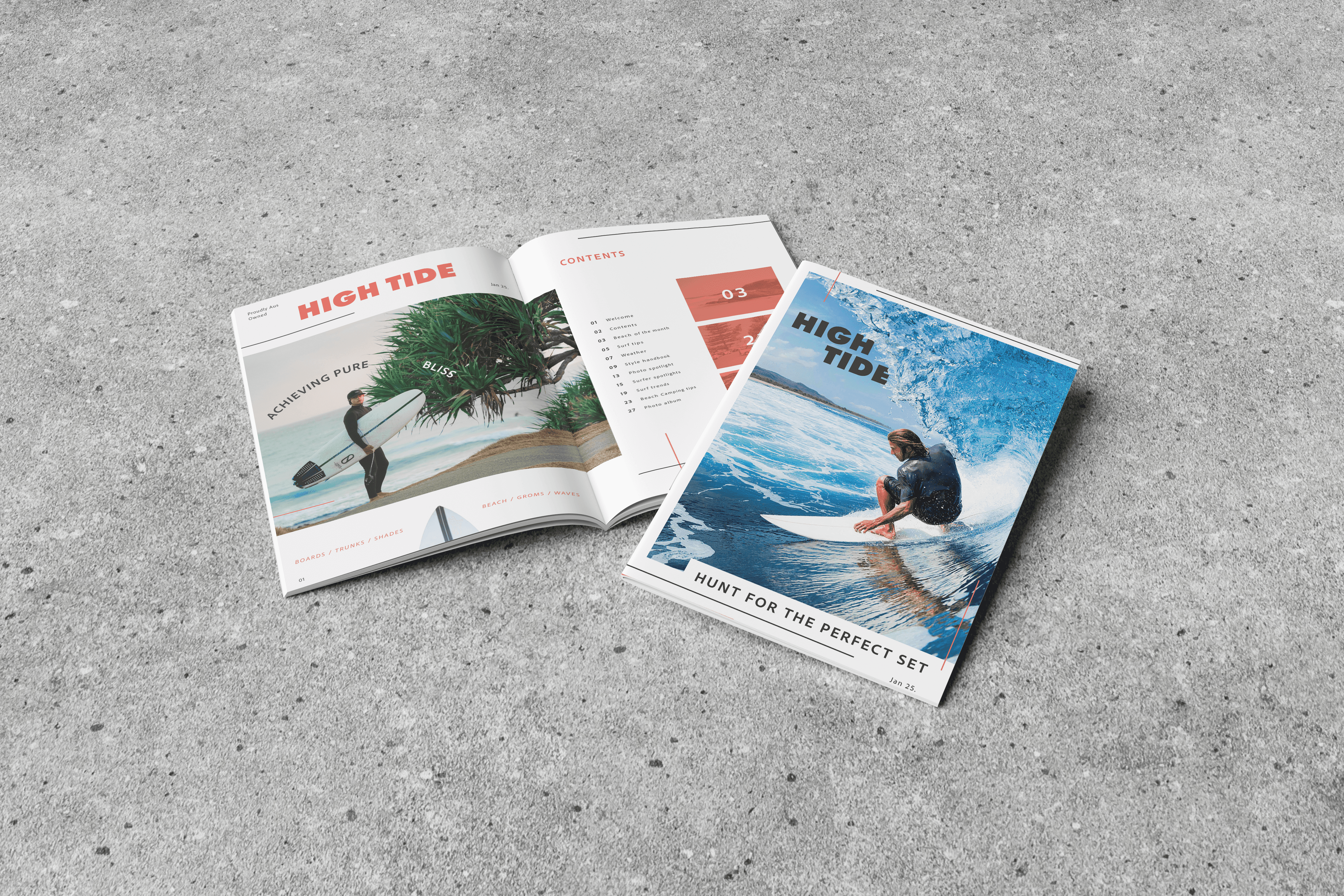 Designed editorial layouts and visual assets for a surf magazine, balancing expressive imagery with clear typographic hierarchy. Focused on capturing surf culture through dynamic composition and cohesive art direction.